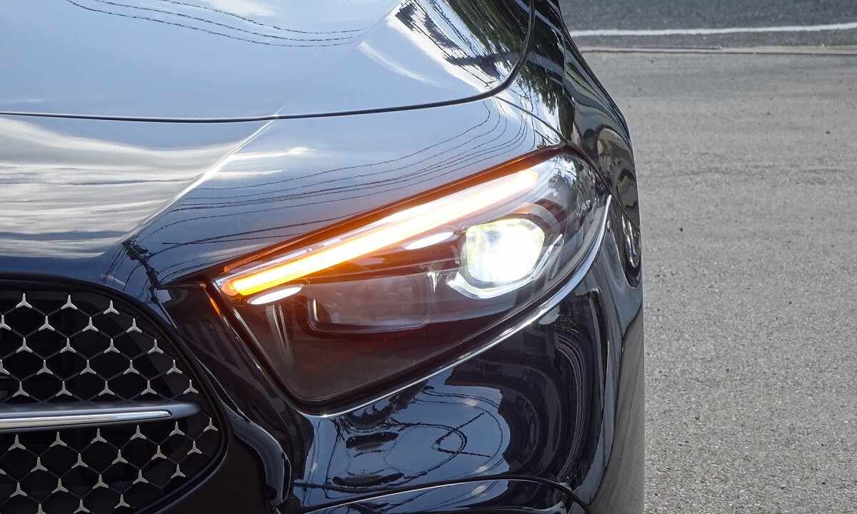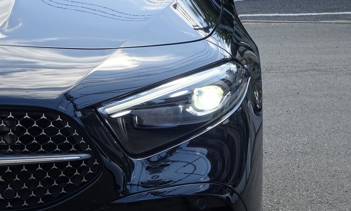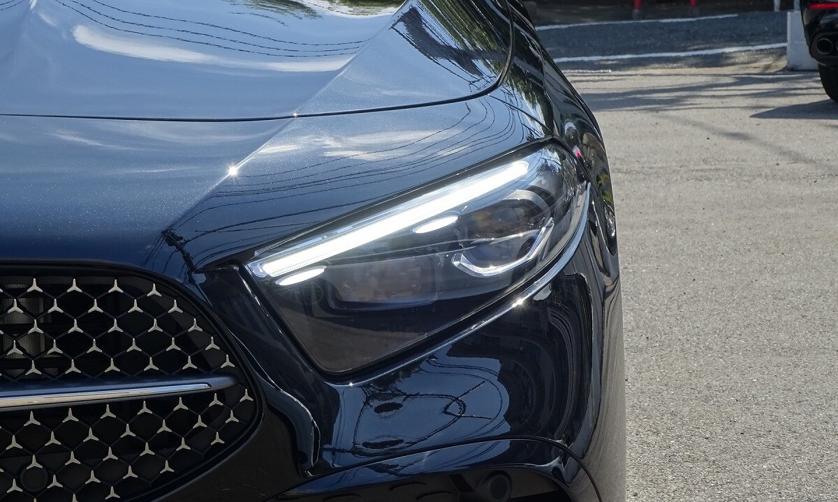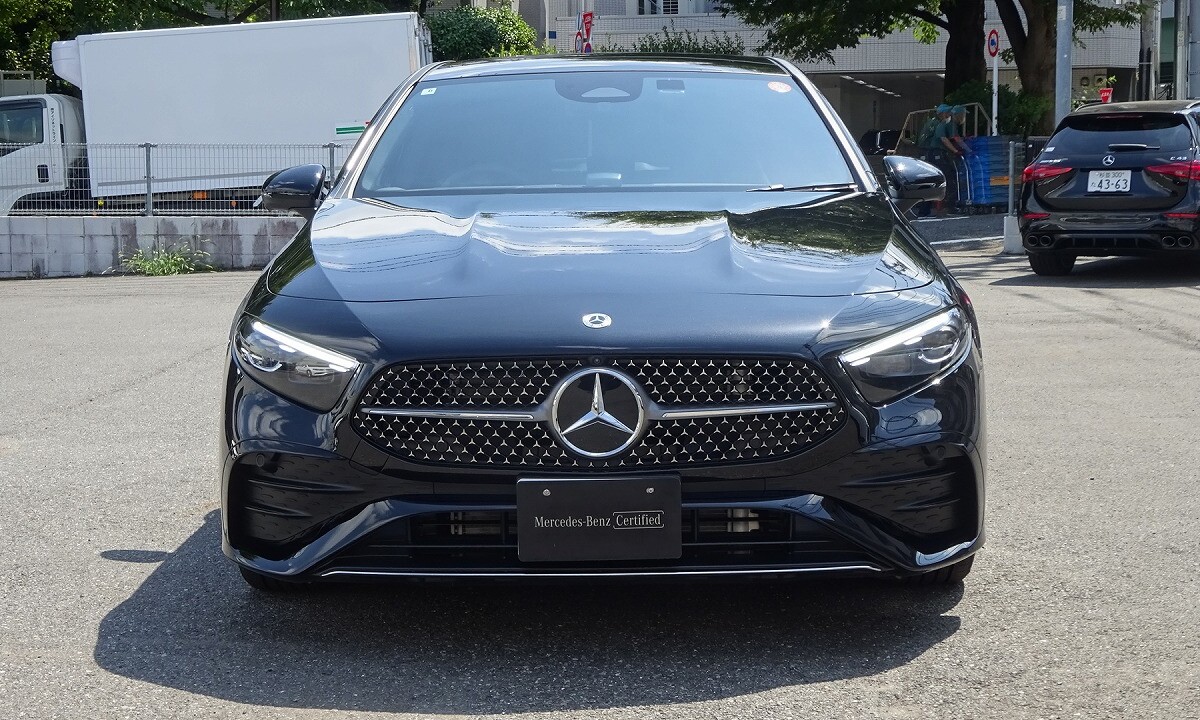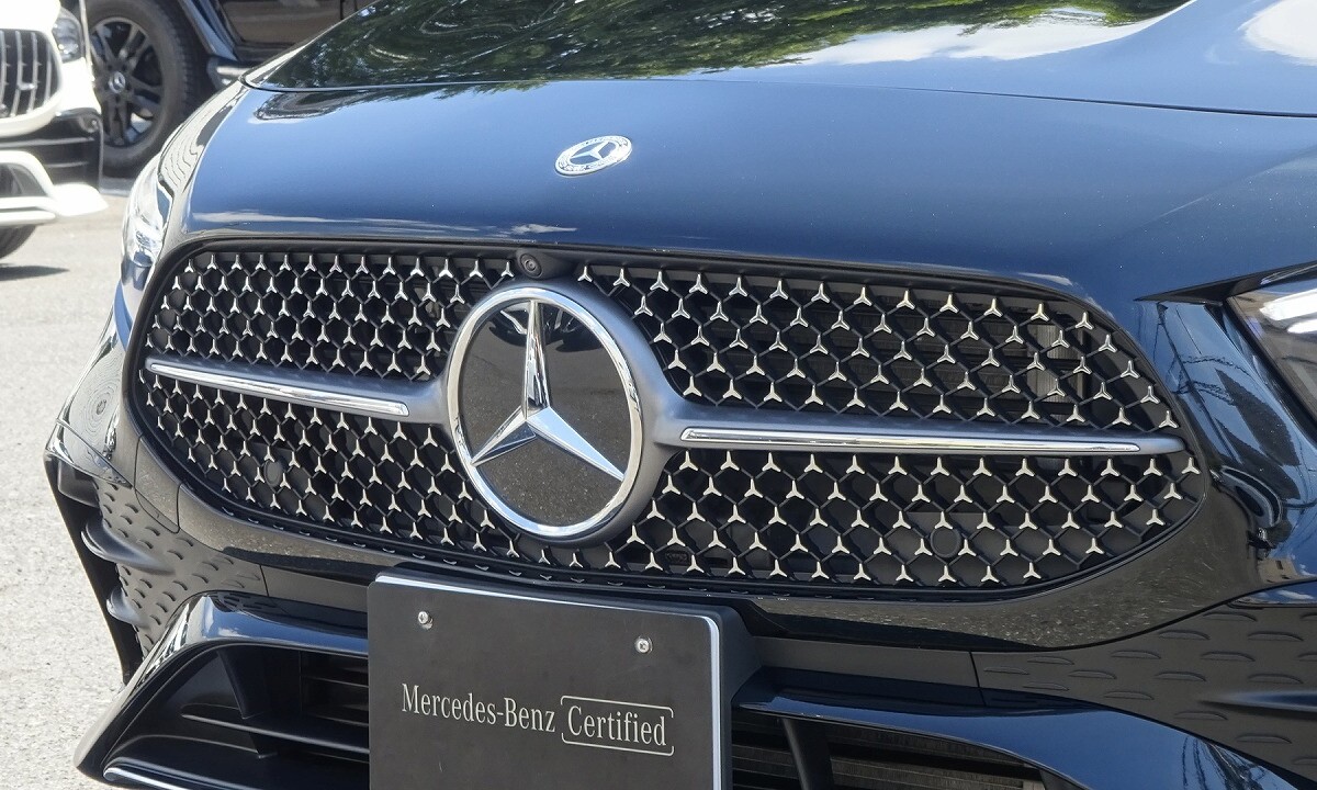 前傾したフロントエンドや、ヘッドライトデザインが、シャープな印象を表現します。アグレッシブかつ先進的なデザインのフロントバンパー、スリーポインテッドスターが散りばめられた「スターパターンフロントグリル」を採用しています。