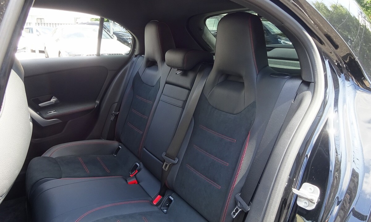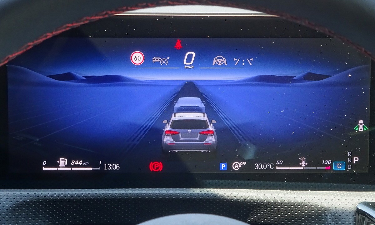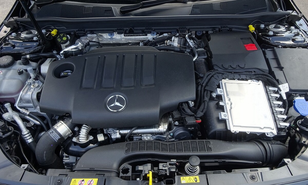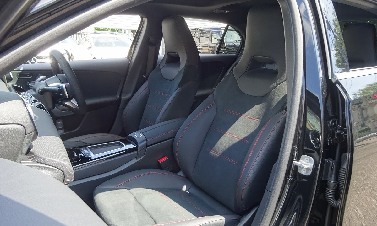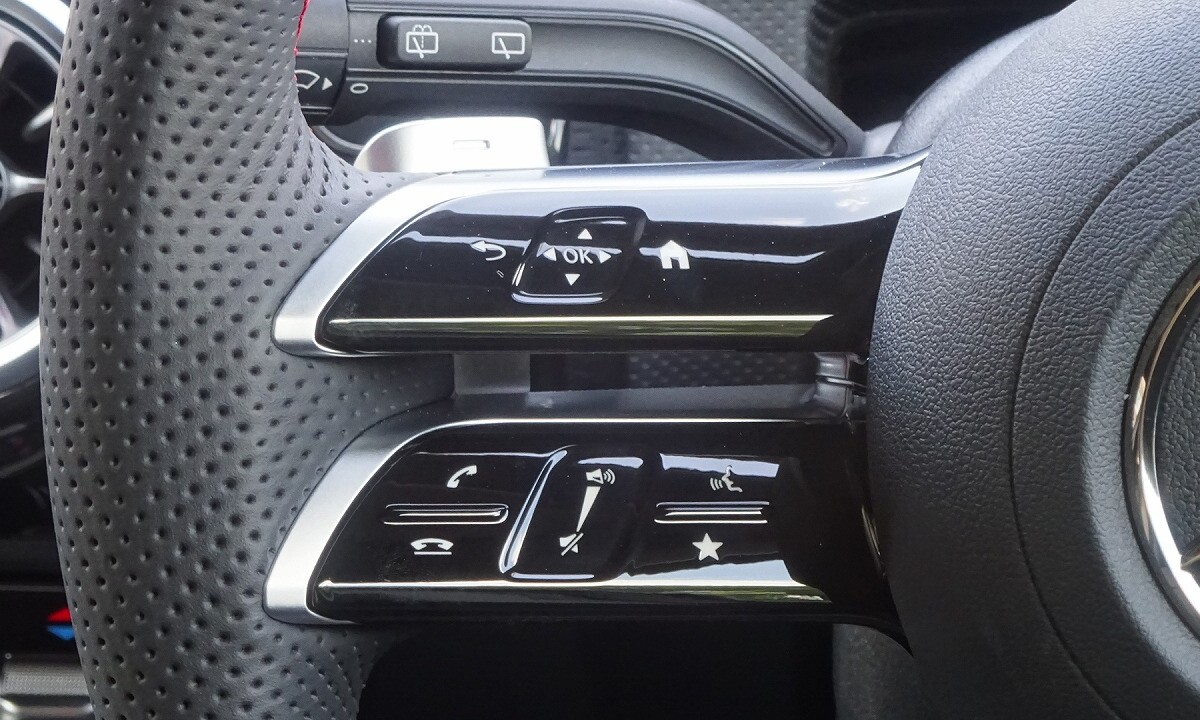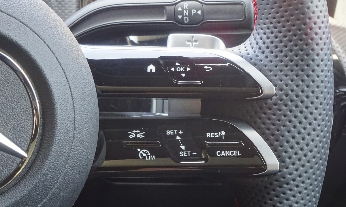 前傾したフロントエンドや、ヘッドライトデザインが、シャープな印象を表現します。アグレッシブかつ先進的なデザインのフロントバンパー、スリーポインテッドスターが散りばめられた「スターパターンフロントグリル」を採用しています。